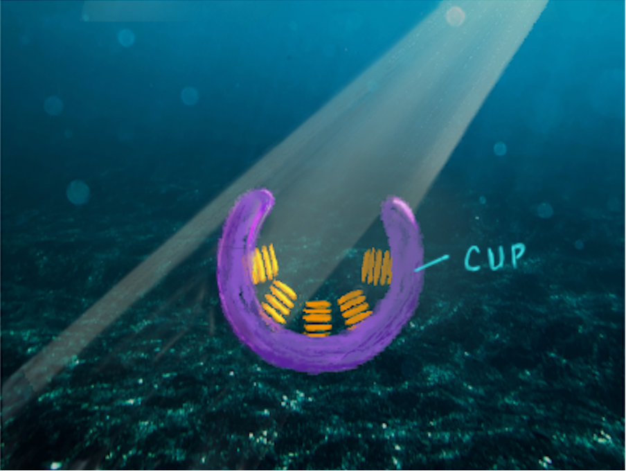 Some more millions of years have passed and Jonas has many more photoreceptors, and his once flat eye has folded inward, forming a shallow cup. This changes everything. Light entering the cup now strikes different receptors depending on its direction, allowing Jonas to form a crude spatial pattern.